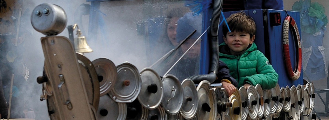 Déambulation scénographiée pour minis festivaliers embarqués avec effets spéciaux artisanaux.