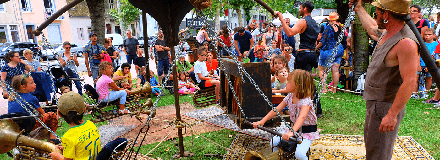 Le public est invité à prendre place et à se laisser bercer le temps d’un voyage poétique. Le Piano-Manège renoue avec la tradition du manège de rue à poussée humaine et musique live.